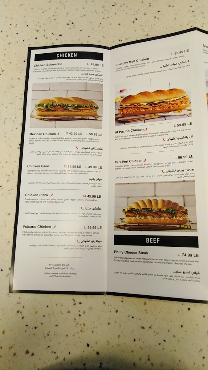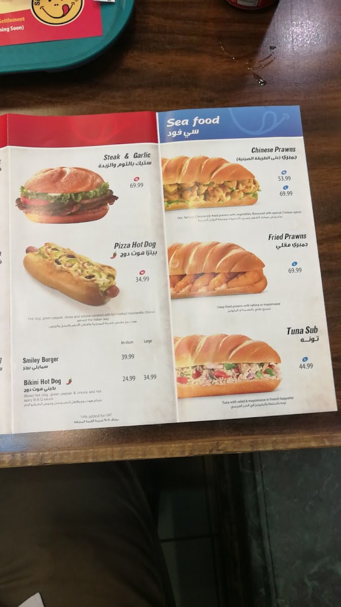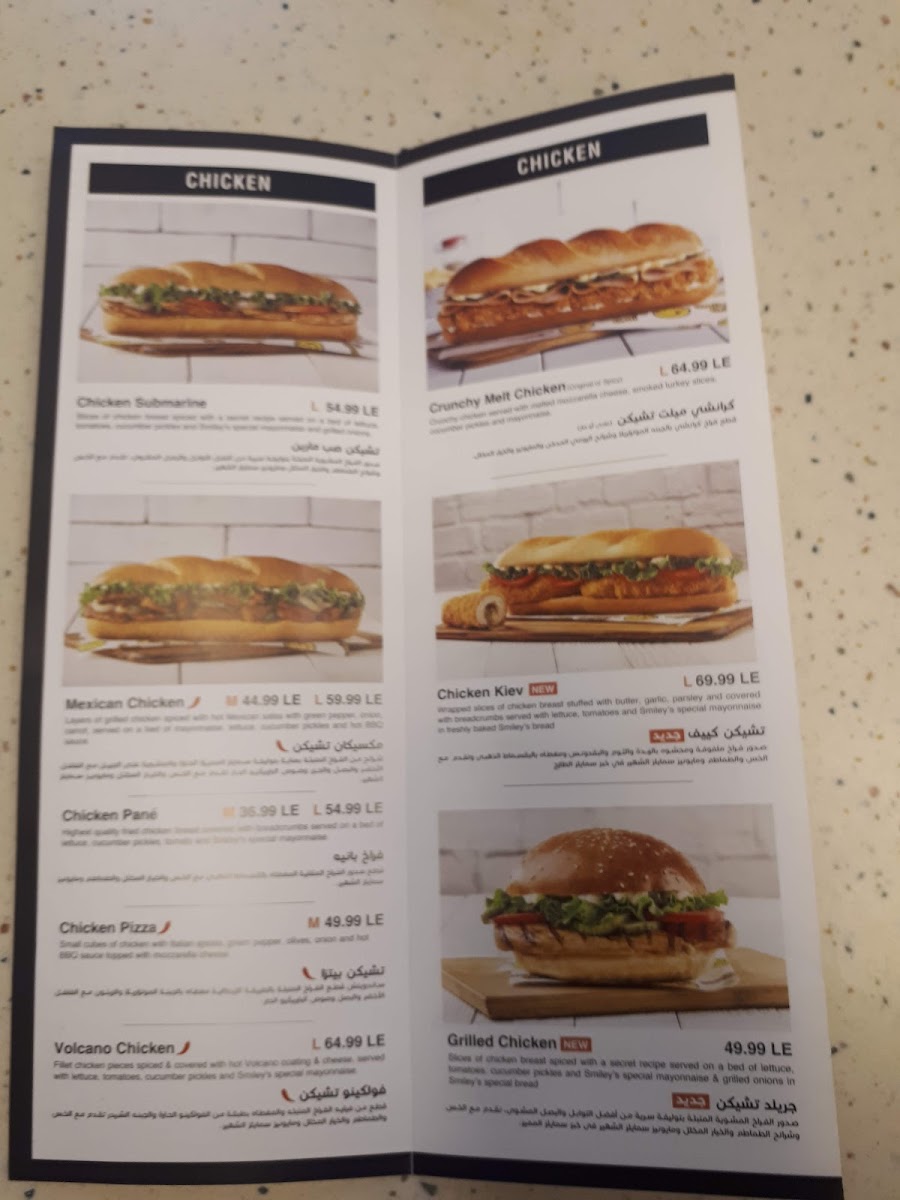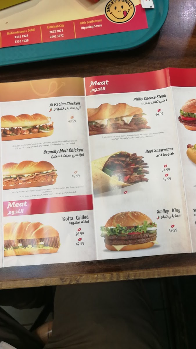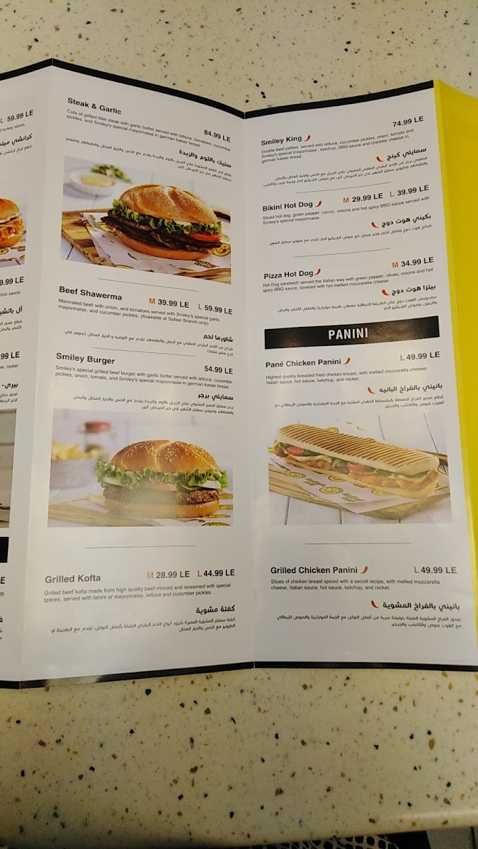 At Smiley’s Grill in Jeddah, Ad Doqi, Dokki, the menu offers a vibrant mix that caters to a variety of tastes. For chicken lovers, highlights include the Chicken Submarine, Smiley’s Crispy Chicken Sandwich, Chick-In Cheese Chinese Chicken, and the Chick N Chilli Bundle, each promising a flavorful bite. Beef options such as the Philly Cheese Steak, Hoisin Beef, and Pizza Hotdog add hearty, satisfying choices. Panini fans can enjoy the Chicken Pane Panini, Al Pacino Panini, and Grilled Chicken Panini, perfectly paired with sides like Onion Rings, Shrimps Spring Rolls, Vegetable Spring Rolls, Croquette Potatoes, and Green Salad. For vegan diners, the Mushroom Fajita offers a well-crafted plant-based option. Families will appreciate the New Kids Meal With A Free Coloring Book Gift, making dining more engaging for little ones. Asian-inspired flavors shine in dishes such as Sweet & Chilli Shrimps, Sweet & Chilli Beef, Sweet & Chilli Chicken, and Chinese Chicken, complemented by a variety of Sauce Cups including Ketchup, Perinaise, Mayonnaise, Cheddar Cheese, and BBQ. Seafood enthusiasts can choose from the Tuna Sub, Fish Strips, Fish Fillet, and Fried Prawns, while beverages like Mineral Water, Sprite Can, V-Cola, and Fresh Orange Juice in both medium and large sizes round out the menu. Overall, Smiley’s Grill presents a diverse, approachable selection that balances classic favorites, international flavors, and kid-friendly options, making it a versatile spot for casual dining.